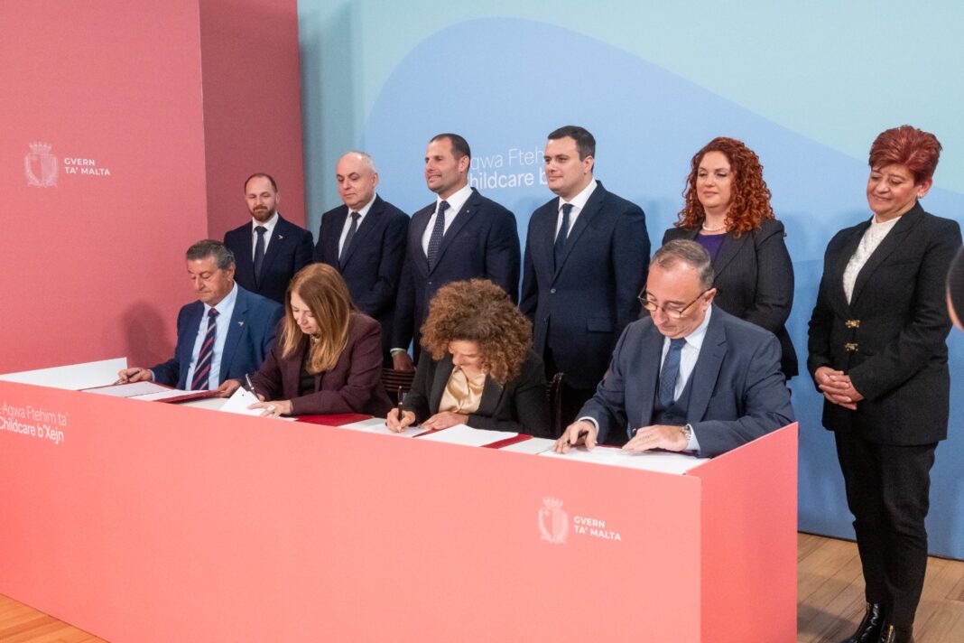 Flimkien mal-Prim Ministru Robert Abela u l-Ministru Byron Camilleri, għal dan il-ftehim kien hemm ukoll is-Segretarju Permanenti Ewlieni Tony Sultana, ic-Chairperson ta’ Jobsplus Charmaine Cristiano, ic-Chief Operations Officer tal-Malta Chamber of SMEs is-Sur Andrew Aquilina u Elizabeth Parnis miċ-Childcare Centre Providers Assocation.
