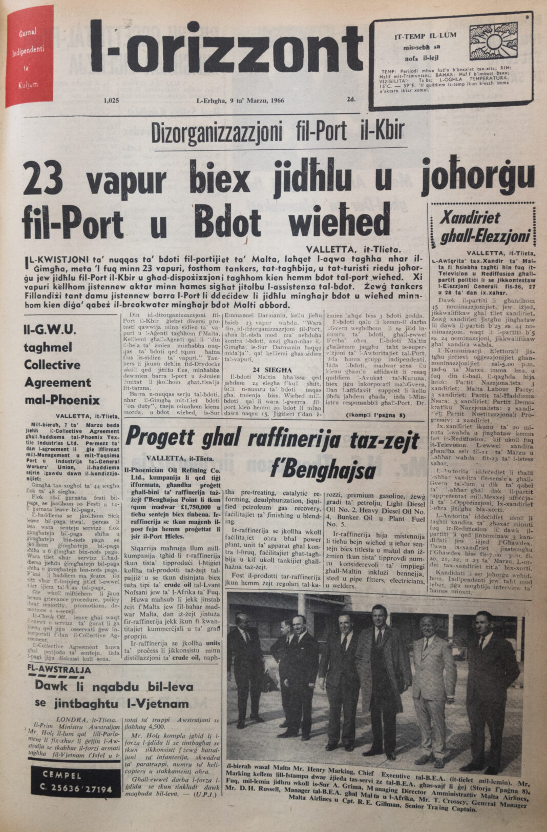 In-nuqqas ta’ ħaddiema dejjem huwa negattiv u dan b’mod speċjali meta l-volum tax-xogħol mitlub ikun wisq biex jintlaħaq. Din il-problema narawha wkoll fil-ġurnata tal-lum. Però, il-problema tan-nuqqas ta’ ħaddiema mhuwiex fenomenu tal-preżent biss. Fil-fatt, f’dan iż-żmien 60 sena ilu L-ORIZZONT, il-ġurnal ta’ kuljum tal-UnionPrint, kien għamel bħala storja ewlenija fil-paġna ta’ quddiem sitwazzjoni gravi fil-portijiet ta’ Malta fejn kien ġie rrapportat li fil-Port il-Kbir kien hemm 23 vapur biex jidħlu imma kien hemm biss bdot wieħed jieħu ħsieb.