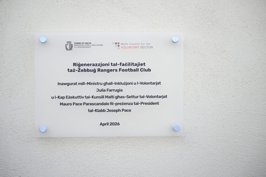 Il-Ministru għall-Inklużjoni u l-Volontarjat Julia Farrugia żaret il-faċilitajiet ta’ Żebbuġ Rangers fejn ġiet konkluża rinnovazzjoni importanti fil-bini tal-klabb, iffinanzjata permezz ta’ fondi mill-Kunsill Malti għas-Settur tal-Volontarjat (MCVS). Din l-inizjattiva hija parti mill-impenn kontinwu tal-Gvern biex isaħħaħ l-għaqdiet volontarji u jtejjeb l-infrastruttura komunitarja madwar il-pajjiż.
