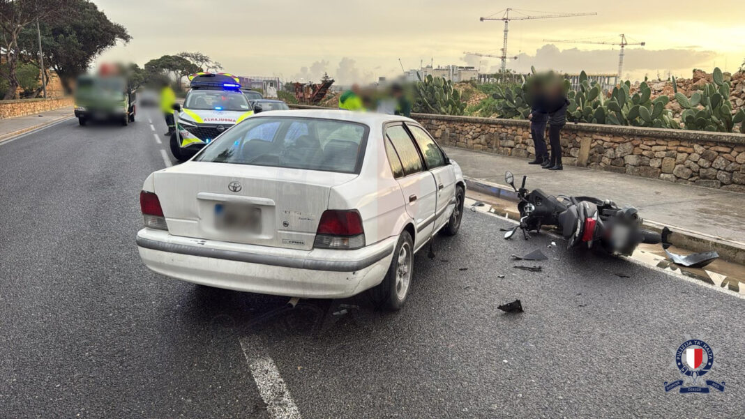 L-ewwel inċident seħħ għall-ħabta tas-7.30am, fi Triq il-Belt Valletta, iż-Żurrieq. Mill-investigazzjonijiet preliminari rriżulta li kienet seħħet ħabta bejn Toyota Tercel misjuqa minn raġel ta’ 42 sena residenti l-Mosta u mutur Honda WW125 misjuq minn raġel ta’ 28 sena residenti ż-Żurrieq.
